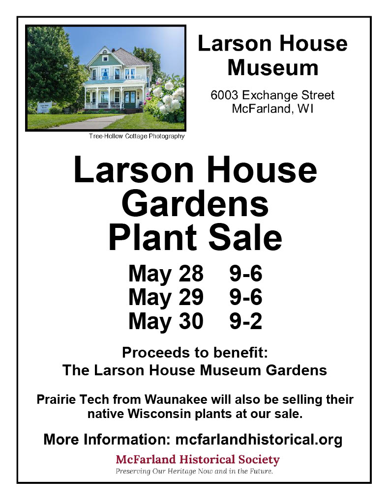 May 28-30, 2026 – Perennial plant sale in the driveway of the Larson House Museum. Inexpensive native and non-native plants from 15+ species that grow great in this climate.